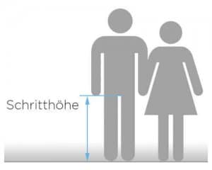Nehmen Sie ein Maßband / einen Zollstock und ein Buch zur Hand. Stellen Sie sich an eine Tür oder Wand, halten Sie das Buch zwischen den Beinen und führen sie es nach oben. Sie haben die Schritthöhe (Schrittlänge) ermittelt, wenn die senkrechte Seite des Buches an der Wand anliegt und Sie die Oberkante des Buches messen (siehe Zeichnung).